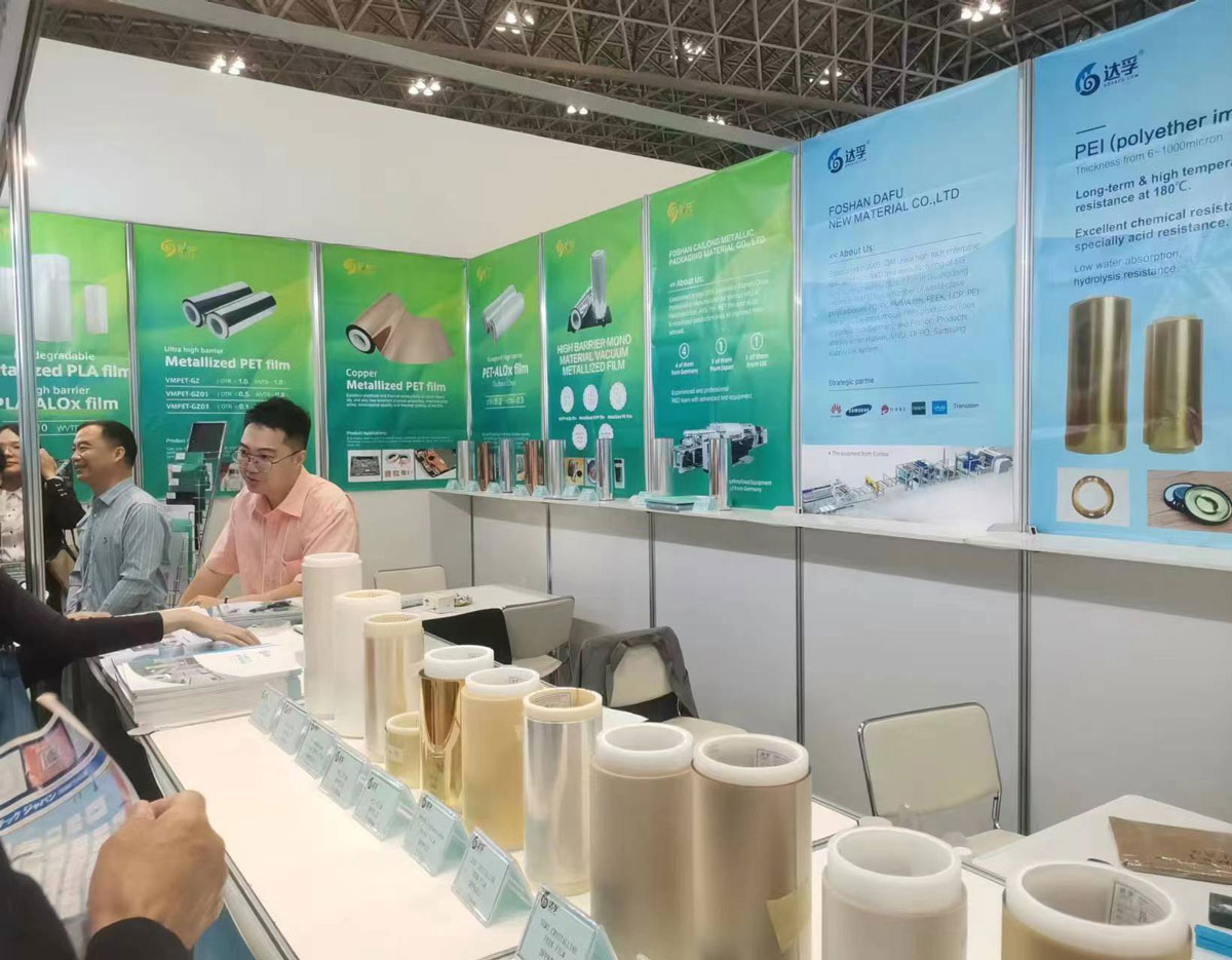 The 2023 Tokyo High-Performance Plastics Exhibition in Japan will be held at the Chiba Makuhari Exhibition Center in Tokyo, Japan from October 4 to 6, 2023. Foshan Dafu New Materials Co., Ltd. participated in this Japan High-performance Film Exhibition. At the exhibition, PEEK film, PEI film and other high-performance special engineering plastic films exhibited by Dafu New Materials attracted the attention of the audience, which brought a little gold to the exhibition.